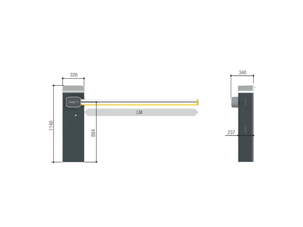 Automatická závora GARD GT4 od značky CAME predstavuje profesionálne riešenie pre riadenie vstupov a výjazdov na parkoviskách, v priemyselných areáloch či komerčných objektoch. Model 803BB-0160 je navrhnutý pre prejazdy so šírkou do 5 metrov a zvláda intenzívnu prevádzku až 350 cyklov za hodinu. Vďaka motoru 24 V DC s pokročilým riadením rýchlosti (Advanced Speed Control) je chod ramena plynulý a presný. Závora je testovaná na životnosť až 3 milióny cyklov (MCBF).