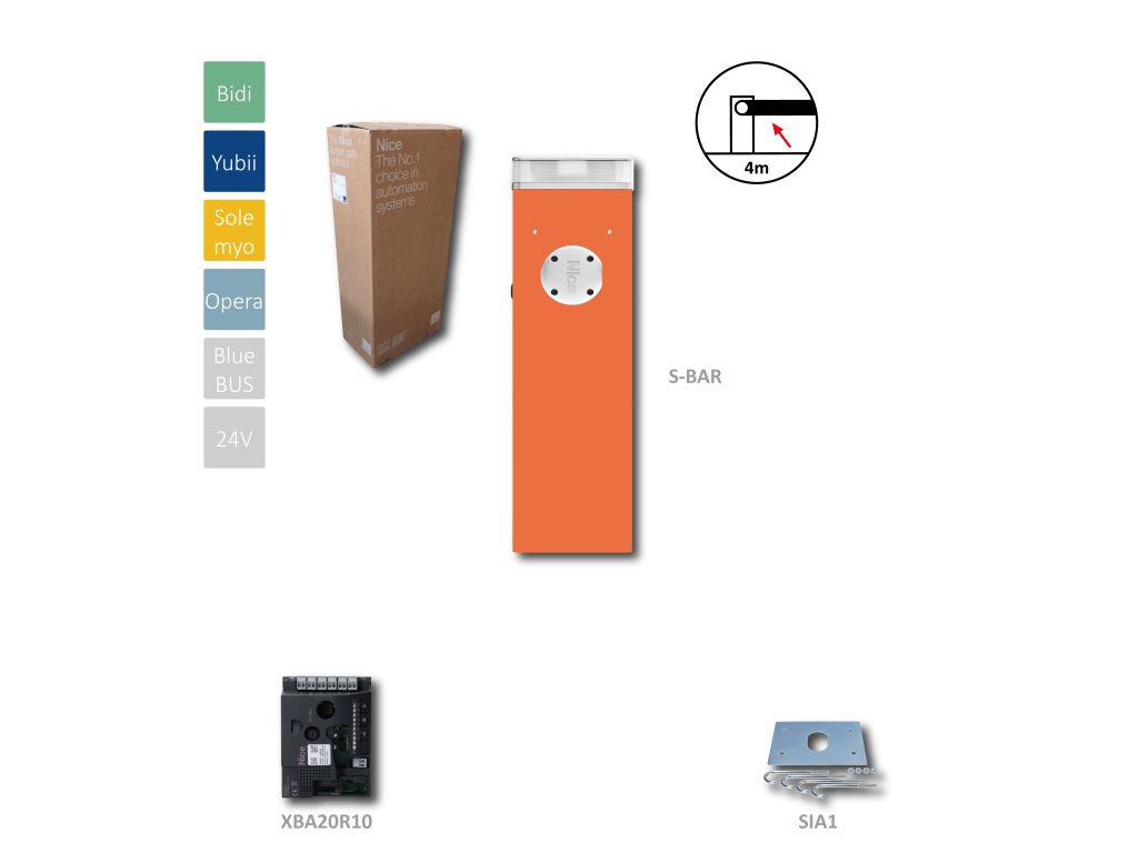S4BAR automatická závora do 4m prejazdu (24V, 300W, 100Nm) s riadiacou jednotkou XBA20, 1 x montážna doska SIA1, bez ramena