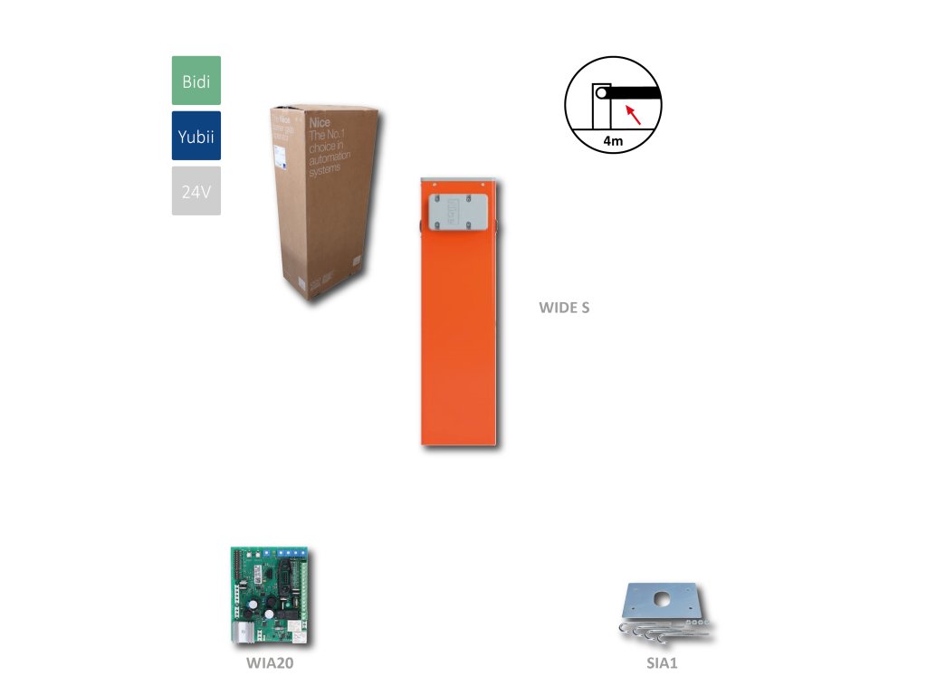 WIDES automatická závora do 4m, 24V, do 100 cyk./h, oranžová bez majáka a bez ramena.