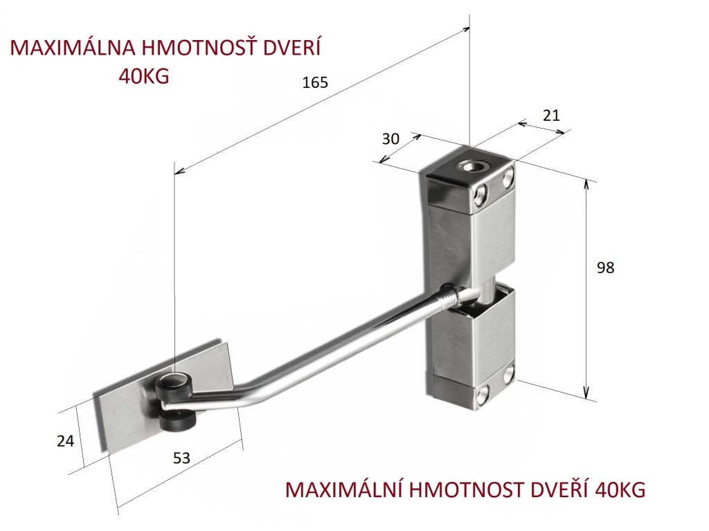 Doporučená maximálna hmotnosť brány do 40kg, šírka brány 900mm.