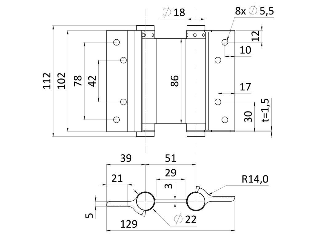 Dvojčinný samozatvárací pánt pre krídlové dvere, nerez