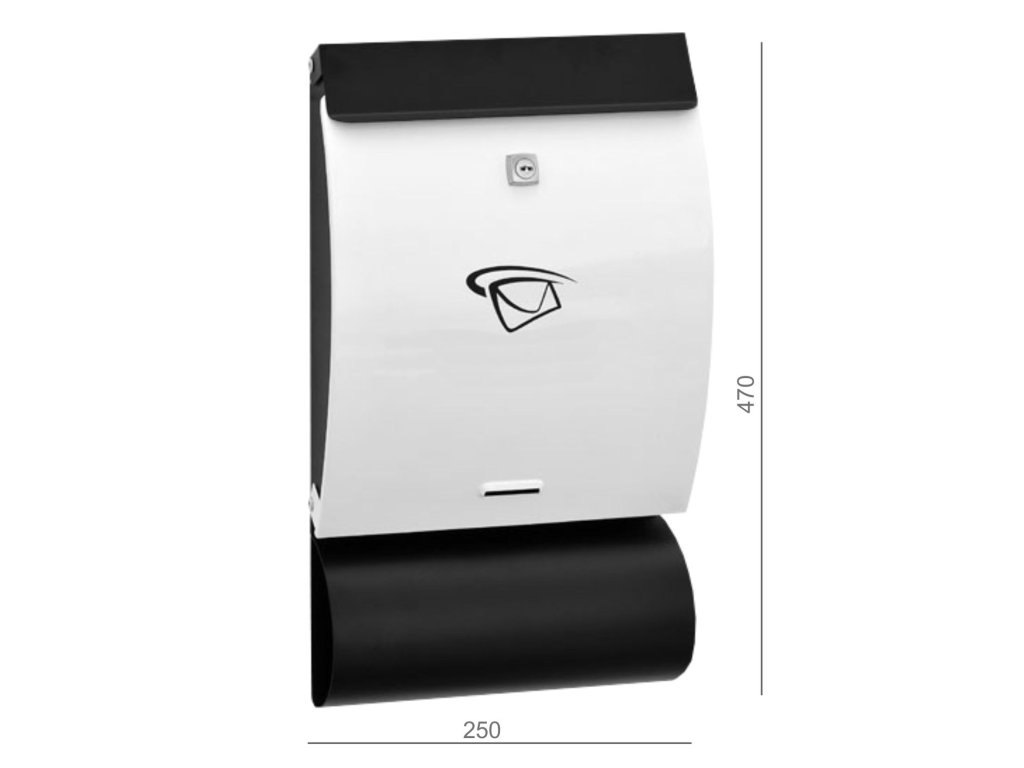 Schránka poštová, (250x470x65mm) nerez/čierna, max. formát listu: C4, leštená nerez /AISI430