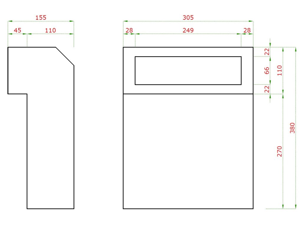 Schránka poštová (380x305x150mm), hrúbka 1.5mm), max. formát listu: A4, farba: RAL 7016 Antracit