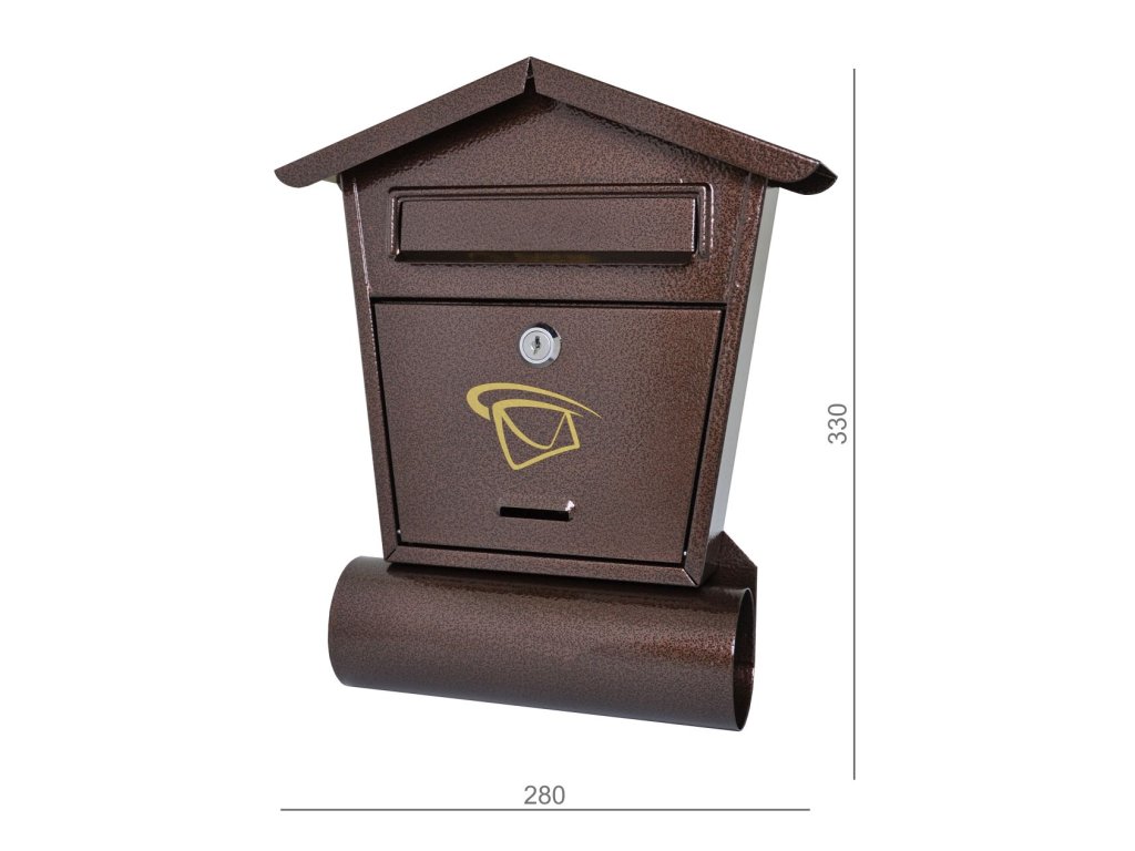 Schránka poštová 280x330x50mm, medená, max. formát listu: B6, tunel na noviny ø70 mm