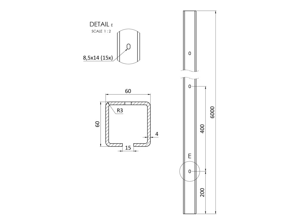 Samonos do 230 kg, dierovaný profil 60 x 60 x 6000 mm, Zn