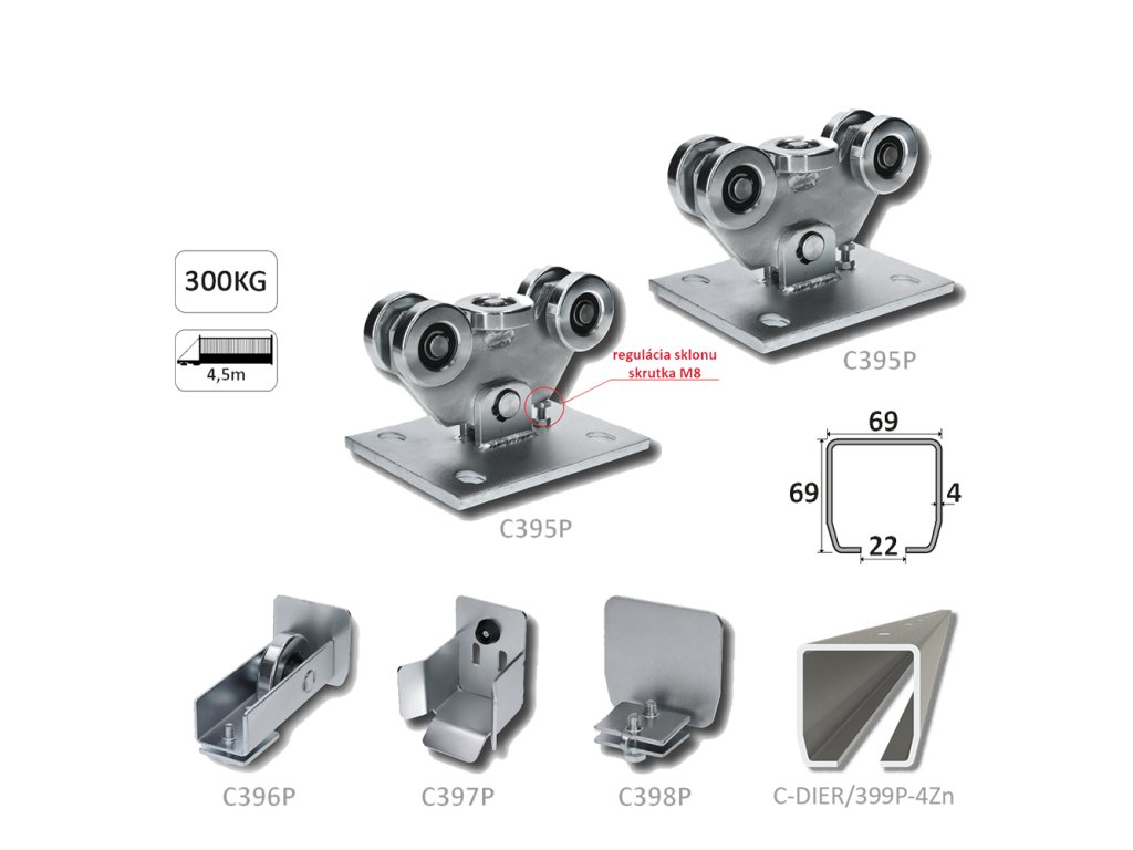 Upozornenie: Set obsahuje samonosný profil dĺžky 6 000 mm. Dĺžka profilu nezodpovedá svetlej šírke prejazdu.