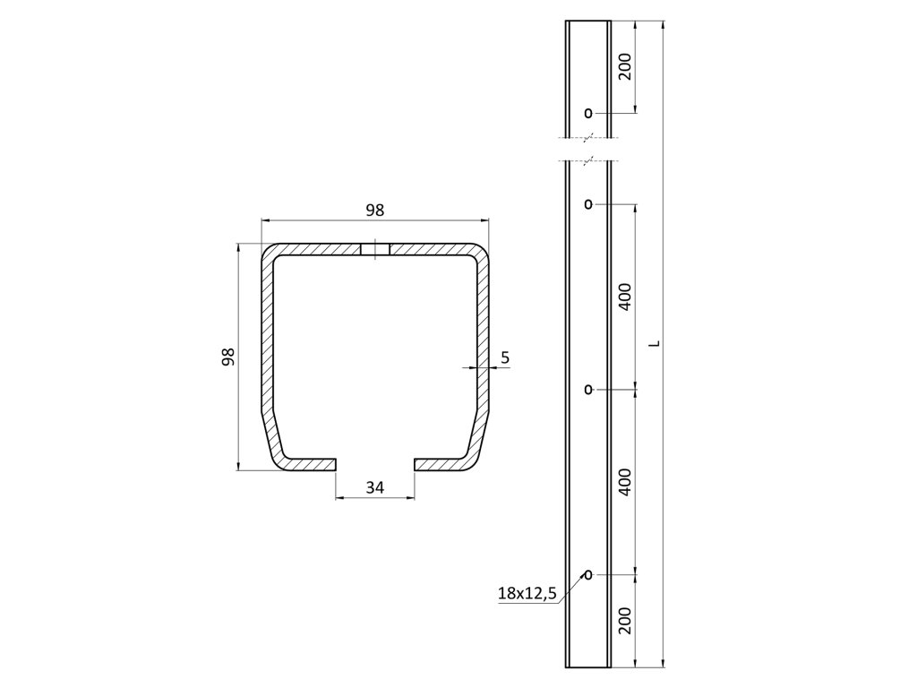 Samonos do 500 kg/8,5 m, profil s otvormi 98 x 98 x 5 mm, Zn