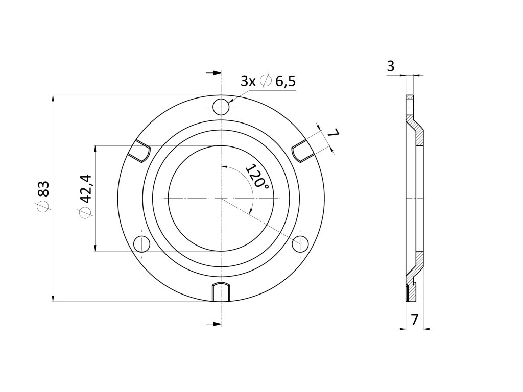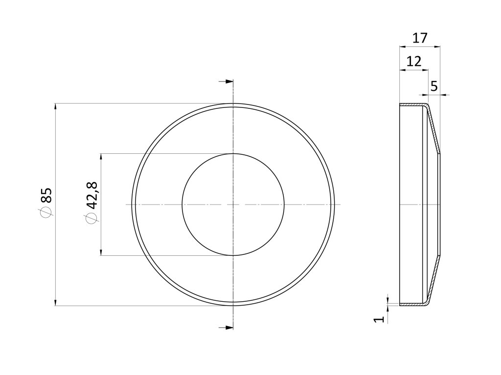 Kotviaca platňa s krytkou ø 85 mm pre ø 42,4 mm, AISI 304