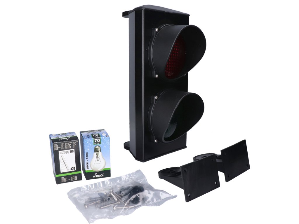 Semafór dvokomorový, červená/zelená žiarovka, kovové telo, 230V