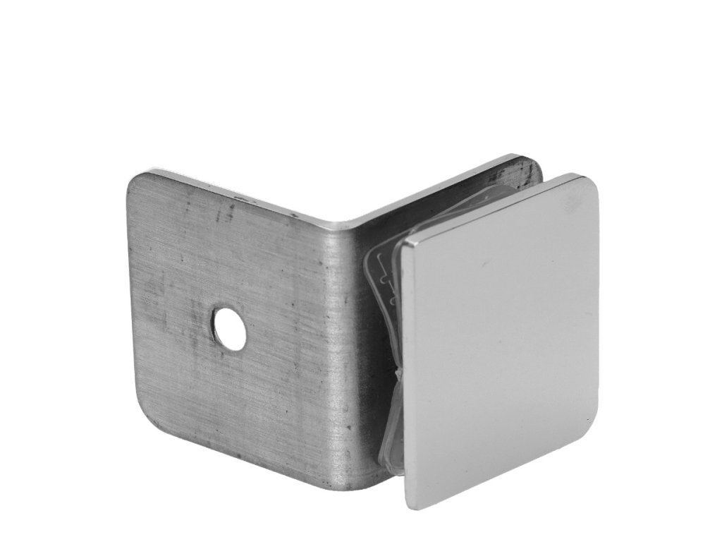 svorka skla na sklenený dverový systém, medzi stenu a sklo 90°, 45x45mm, hrúbka skla 8-10mm, leštená nerez AISI304