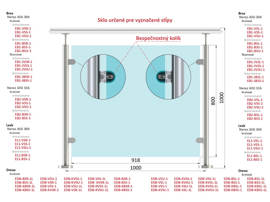 Transparentné ESG/VSG sklo medzi stĺpky 1000 mm
