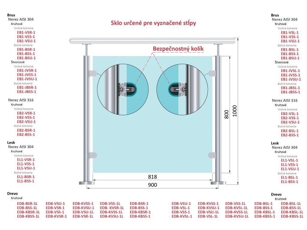 Transparentné ESG/VSG sklo medzi stĺpky 900 mm