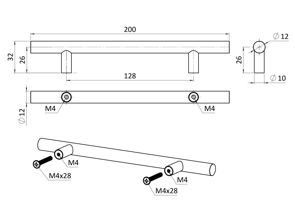Úchytka pre rozteč 128 mm, dutá, brúsená nerez AISI 304