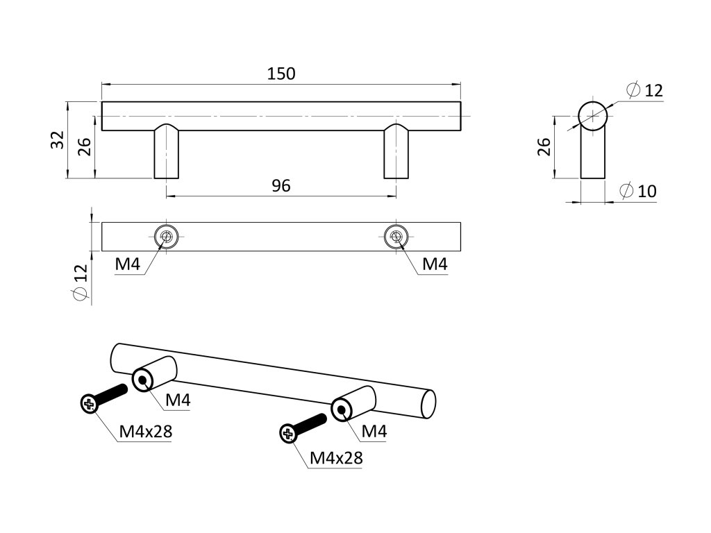 Úchytka pre rozteč 96 mm, dutá, brúsená nerez AISI 304