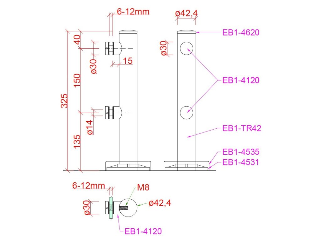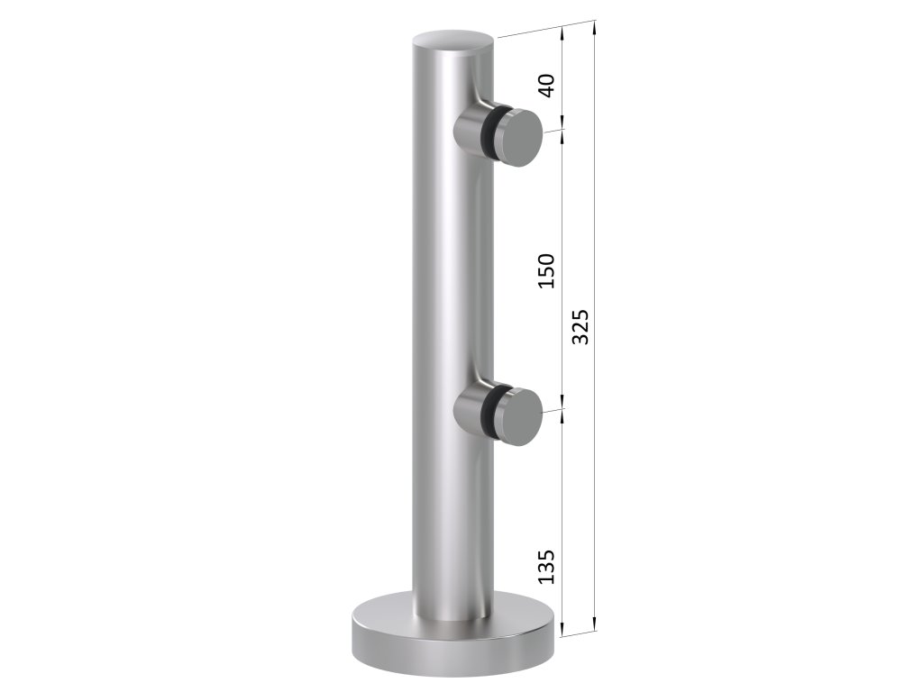Nerezový stĺpik na sklo s dvomi svorkami ø30mm