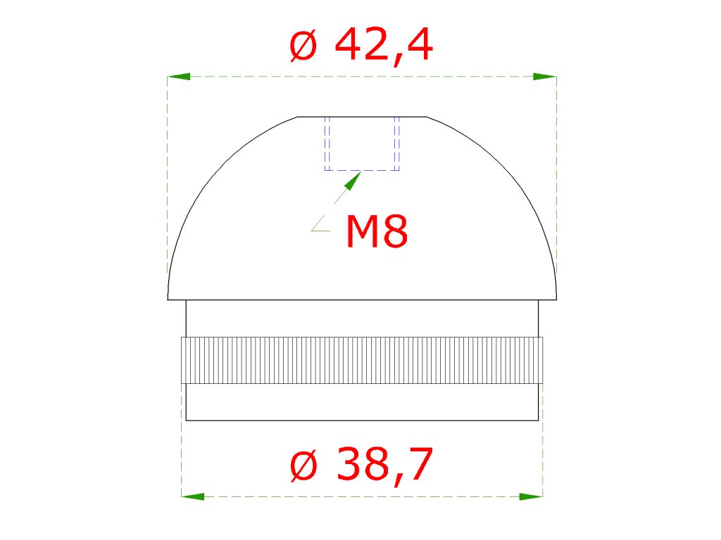 spodok držiaka madla ø 42.4mm, so závitom M8, brúsená nerez K320 /AISI304