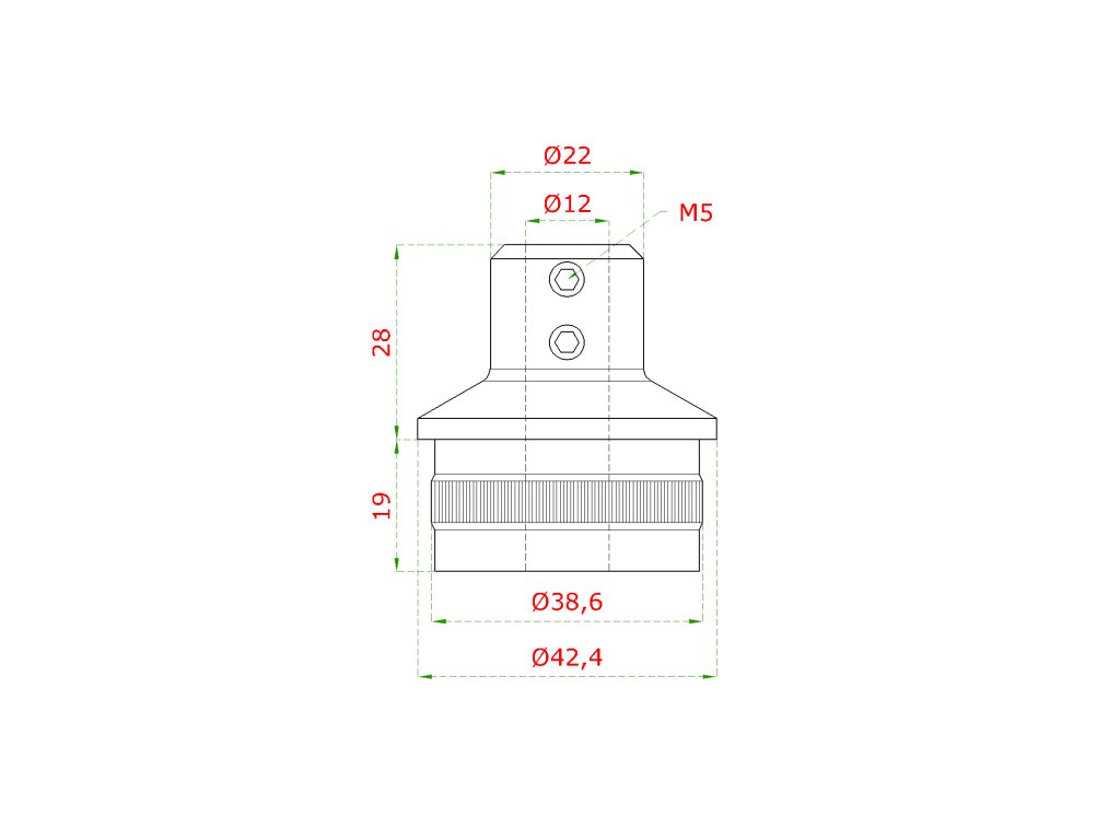 Spodok držiaka madla ø 42,4 mm s prechodom ø 12 mm, AISI 304