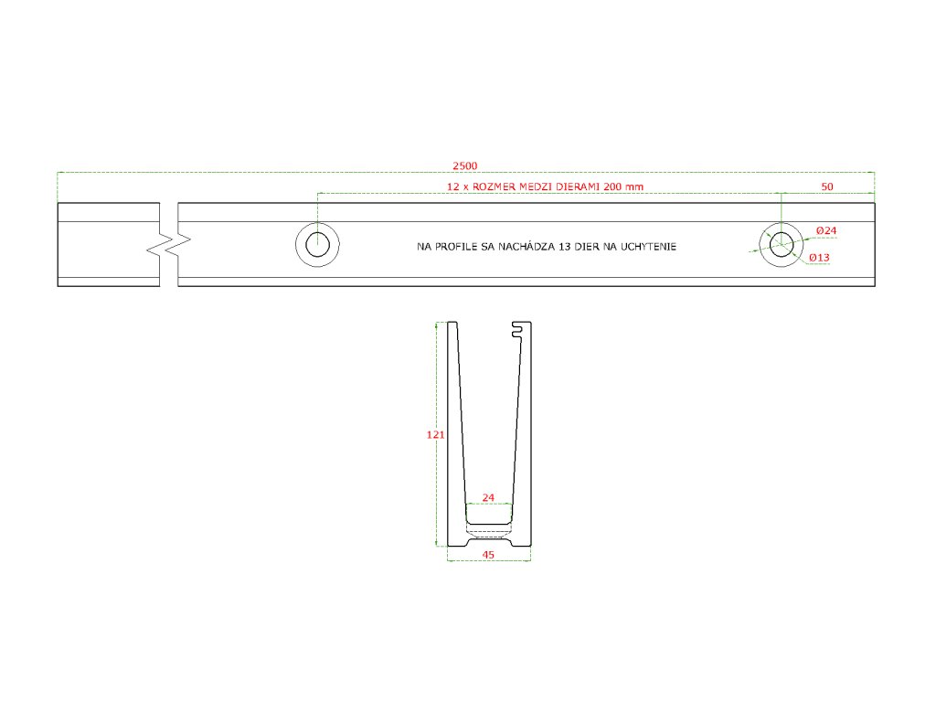 Kotviaci profil, sklo 12 - 22 mm, vrchné kotvenie, L = 2,5 m