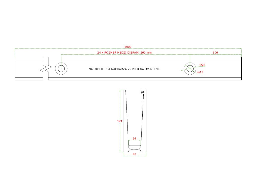 Kotviaci profil, sklo 12 - 22 mm, vrchné kotvenie, L = 5 m