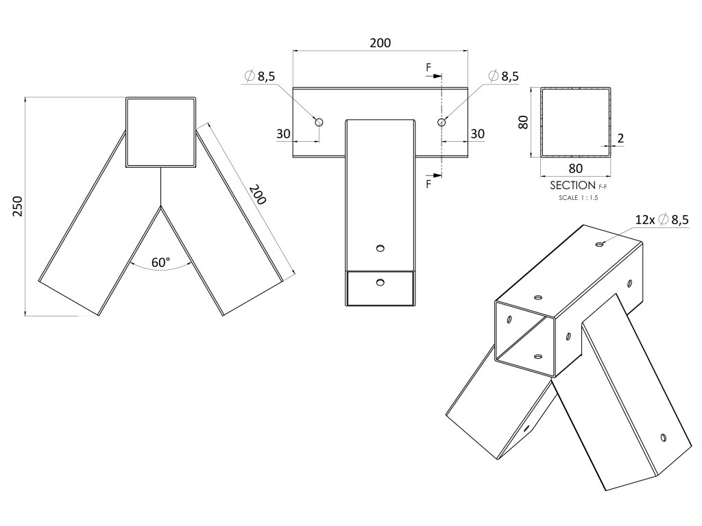 - Vhodné pre profil 80x80mm, ktorý stačí jemne zbrúsiť na koncoch, vďaka čomu doň budú spojky pasovať