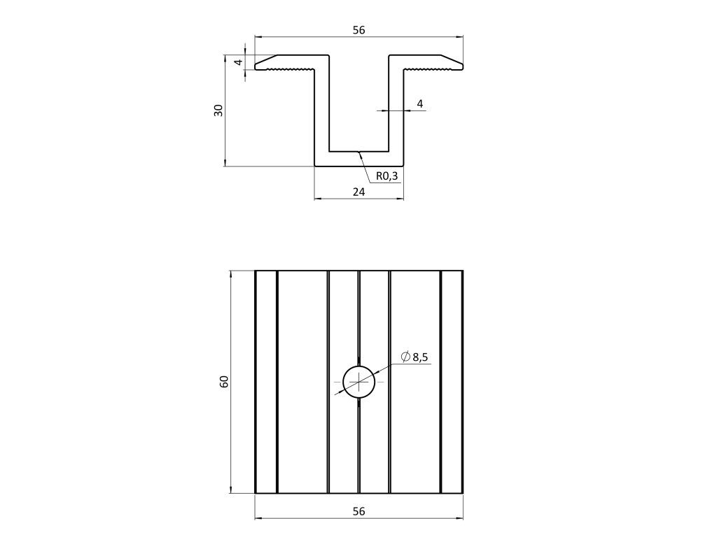 Hliníková stredová svorka na upevnenie solárnych panelov