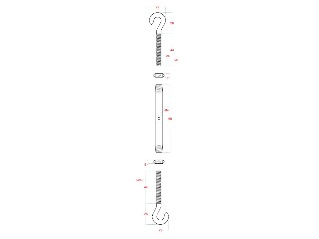 Šponovák pre lanko, závit M6 a LH6, brúsená nerez AISI 304