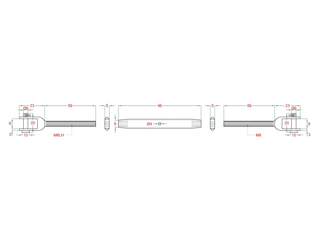 Šponovák pre lanko, závit M6 a LH6, brúsená nerez AISI 304