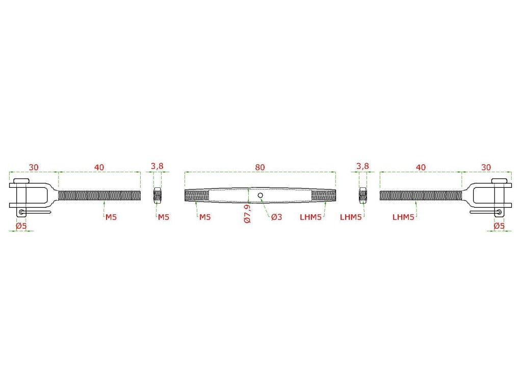 Šponovák pre nerezové lanko, so závitom M5 a LH5, AISI 304