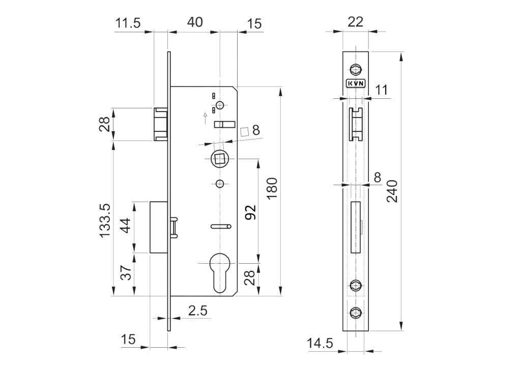 Zámok vložkový, zápust 55 mm, rozteč 92 mm, obojstranný