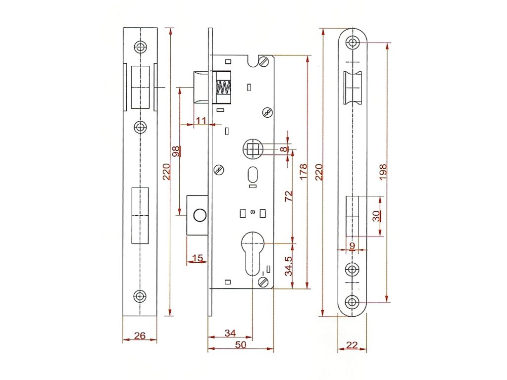 Zámok vložkový PRAVÝ, zápust 50mm, rozteč 72mm, povrch biely zinok
