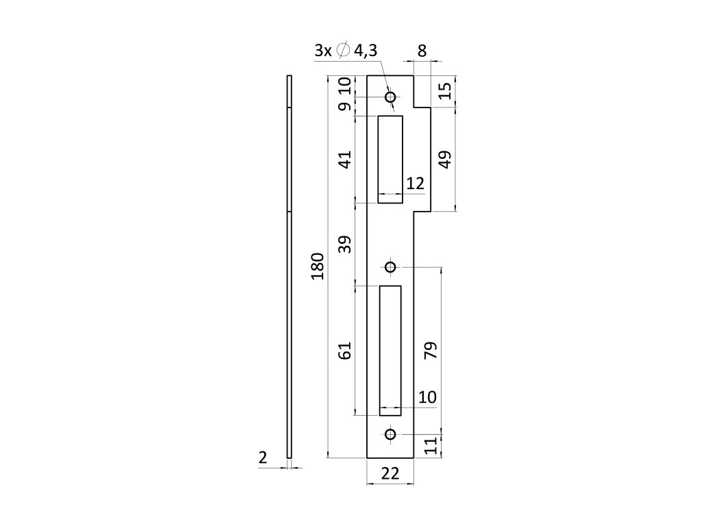 Zapadací plech výlučne pre zámky ZM85/40, ZM85/50, ZM90/35H, ZM90/40H, ZM90/45H, ZM90/50H, ZM90/60H