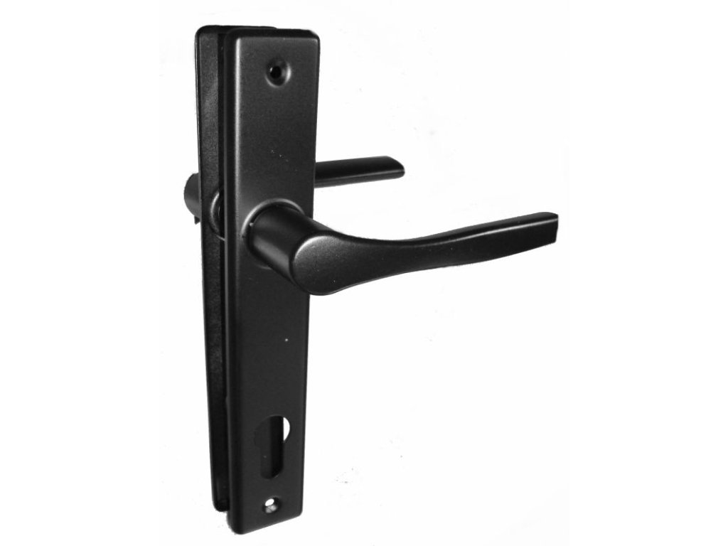 Kľučka Al, štít Fe, rozteč 90mm, farba čierna, s otvorom pre stavebnú vložku