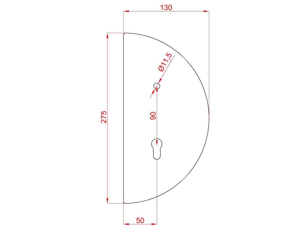 Štít 275x130x3mm s otvormi, rozteč 90mm, otvor pre kľučku ø 11,5mm, pravý, pre zámok ZM90/80