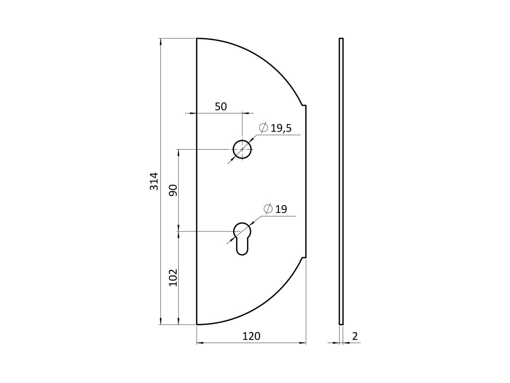 Štít 314 x 120 x 2 mm, rozteč 90 mm, zdobený, pravý