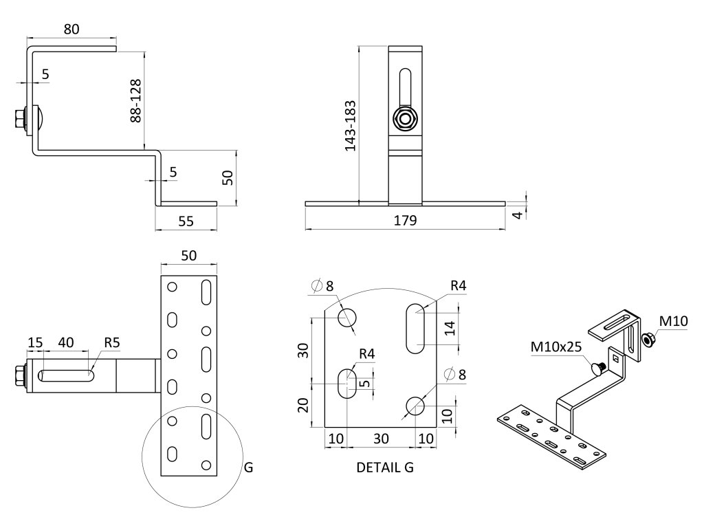 Strešný hák nastaviteľný na vrchu, pre zakrivené krytiny