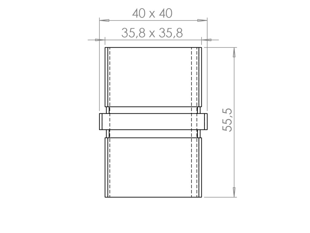 spojka napájacia, priama na jokel 40x40x2mm, brúsená nerez K320 /AISI304