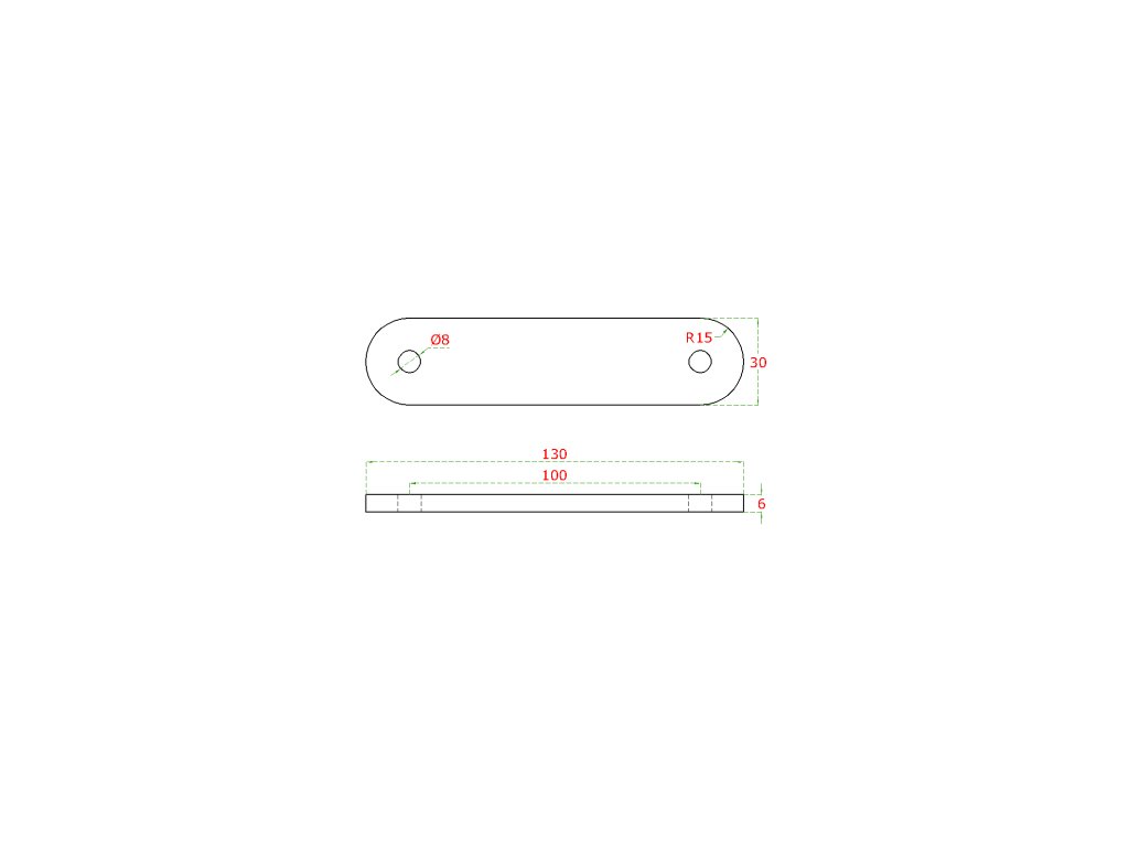 kotviaca platňa (130x30x6mm / M8), brúsená nerez K320 /AISI304