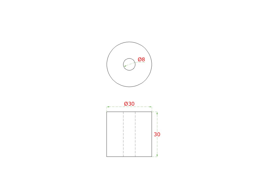 prechod na vymedzenie vzdialenosti, ø 30mm /ø 8mm /L: 30mm, brúsená nerez K320 /AISI304, bal: 1ks