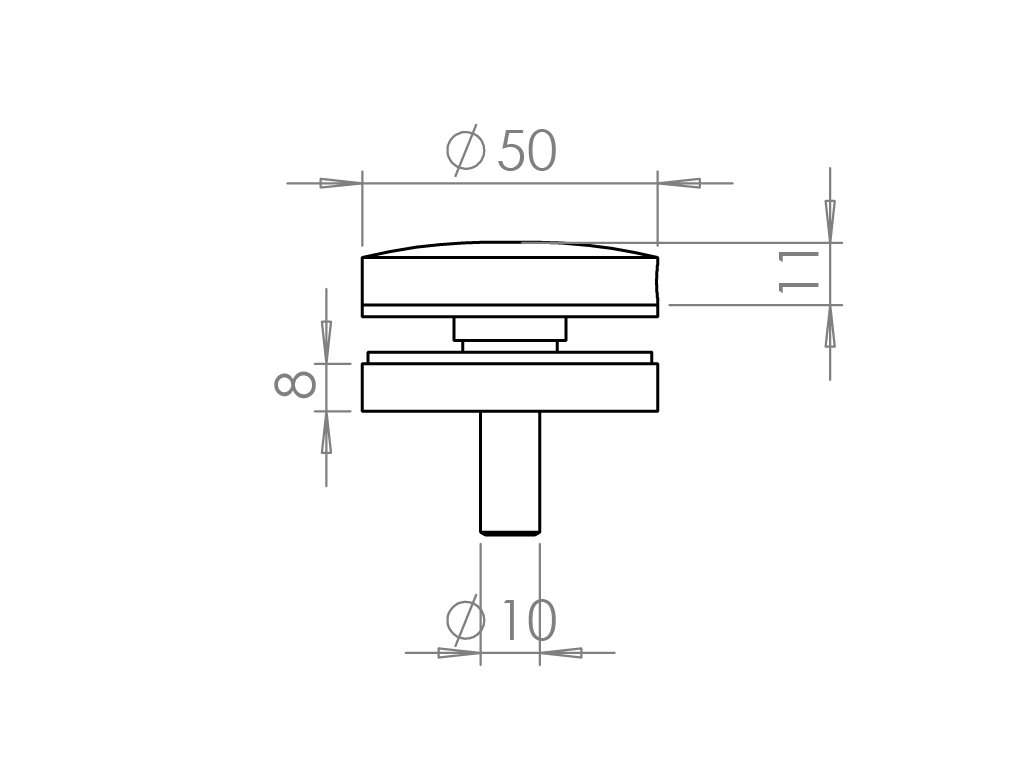 svorka bodová na sklo 8-16mm plochá (ø 50mm / M10), brúsená nerez K320 /AISI304, balenie obsahuje gumičky na sklo