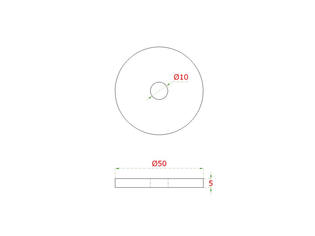 prechod na vymedzenie vzdialenosti, ø 50mm /ø 10mm /L: 5mm, brúsená nerez K320 /AISI304, bal: 1ks