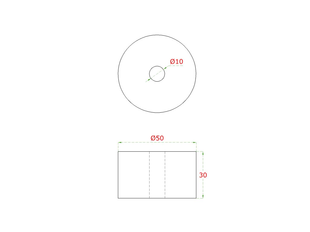prechod na vymedzenie vzdialenosti, ø 50mm /ø 10mm /L: 30mm, brúsená nerez K320 /AISI304, bal: 1ks