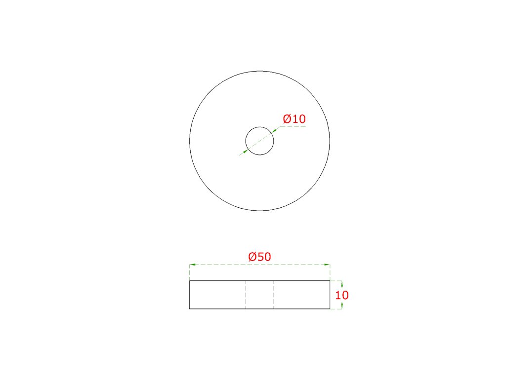 prechod na vymedzenie vzdialenosti, ø 50mm /ø 10mm /L: 10mm, brúsená nerez K320 /AISI304, bal: 1ks