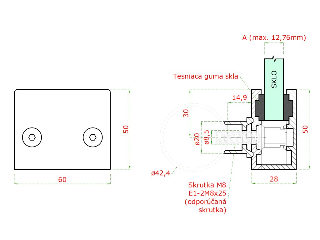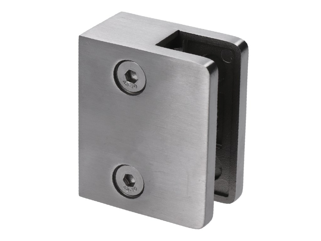 Svorka skla koncová plochá na trubku ø42.4mm (60x50x28mm), na sklo 8-12.76mm, brúsená nerez K320 /AISI304, balenie neobsahuje gumičky na sklo
