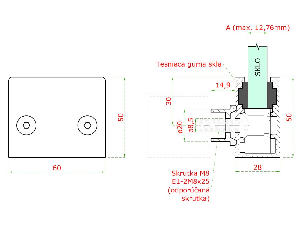 Svorka koncová na jokel, sklo 8 - 12,76 mm, brúsená AISI 304