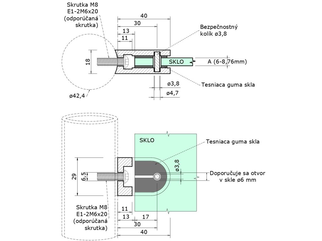 Svorka skla 6-8.76mm/plechu 1.5-2mm na trubku ø42.4mm, brúsená nerez K320 /AISI304.