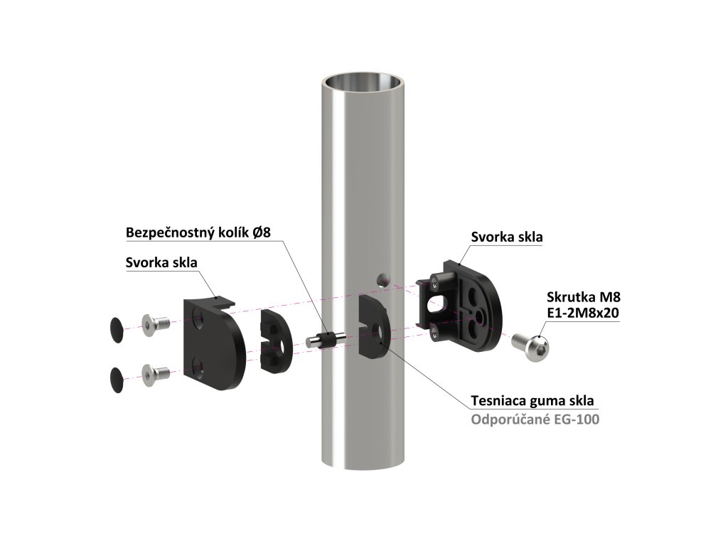 Svorka na sklo 6 - 10,76 mm, brúsená AISI 304, čierna