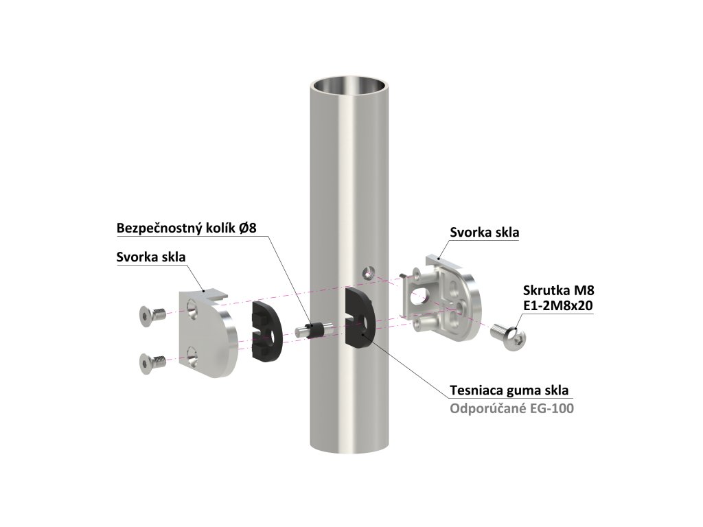 svorka skla na trubku ø 42.4mm (50x40x26mm) brúsená nerez K320 /AISI304/, balenie neobsahuje gumičky na sklo