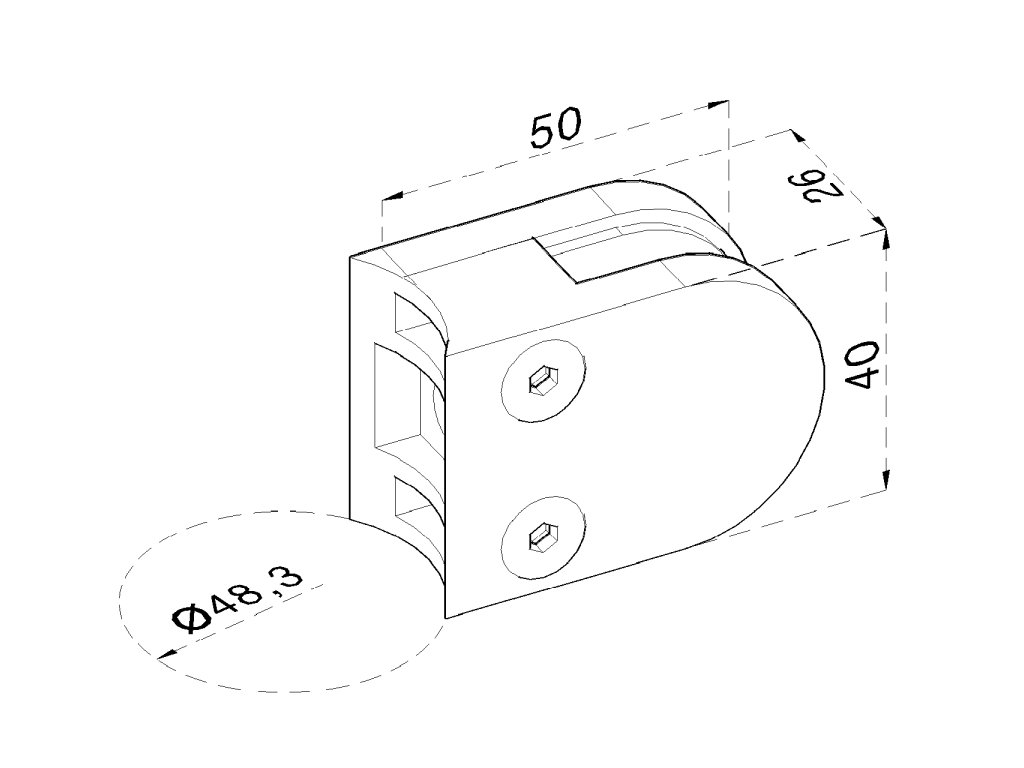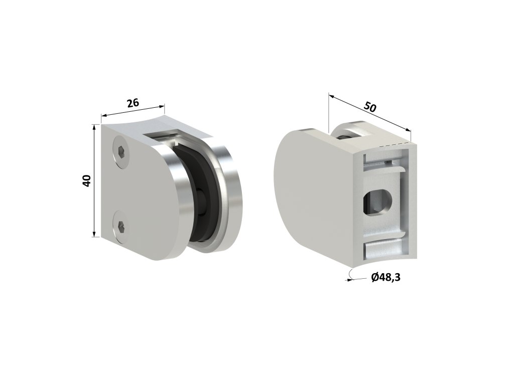 svorka skla na trubku ø 48.3mm (50x40x26mm) brúsená nerez K320 /AISI304/, balenie neobsahuje gumičky na sklo