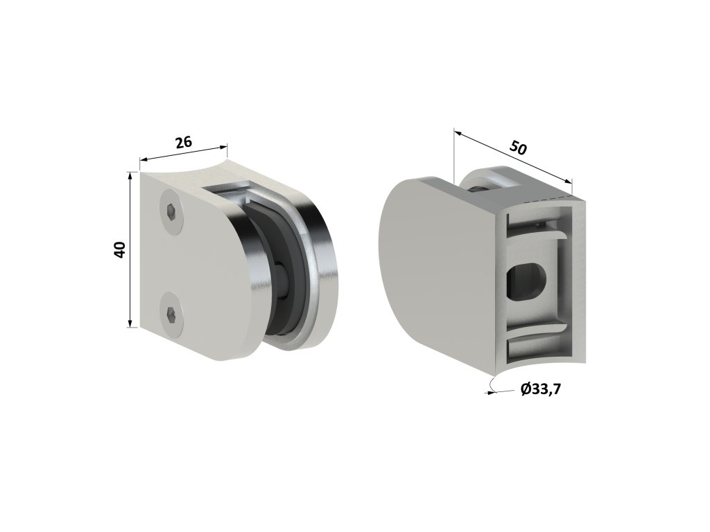 Kvalitná nerezová svorka určená na uchytenie sklenených panelov na trubku s priemerom ø33.7mm. Poskytuje spoľahlivé upevnenie a estetický vzhľad. Vyrobená z nerezovej ocele AISI 304 s povrchovou úpravou brúsená nerez K320, ktorá zaručuje vysokú odolnosť voči korózii a dlhú životnosť.