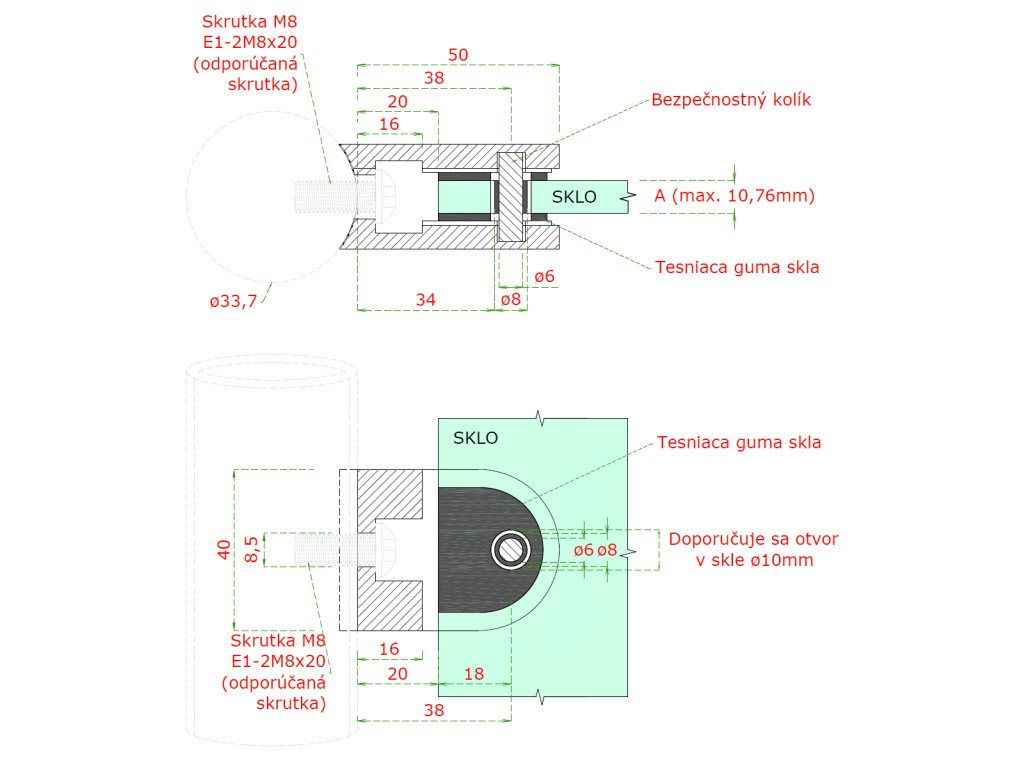 Balenie neobsahuje gumičky na sklo, je nutné ich dokúpiť samostatne podľa požadovanej hrúbky skla.